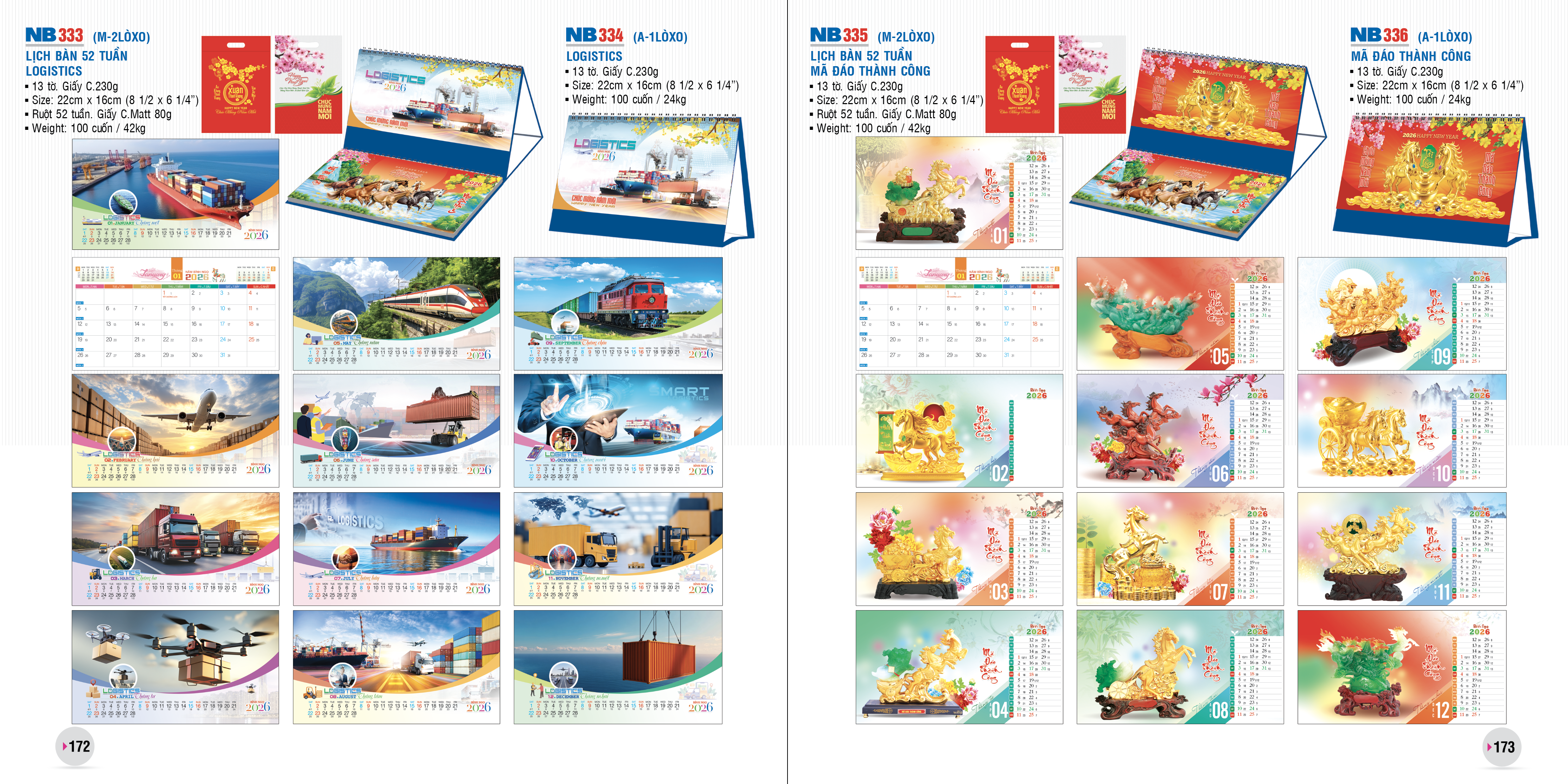Lịch Để Bàn 22x16cm – NB 333- 334-335-336 Logistics – Mã Đáo Thành Công
