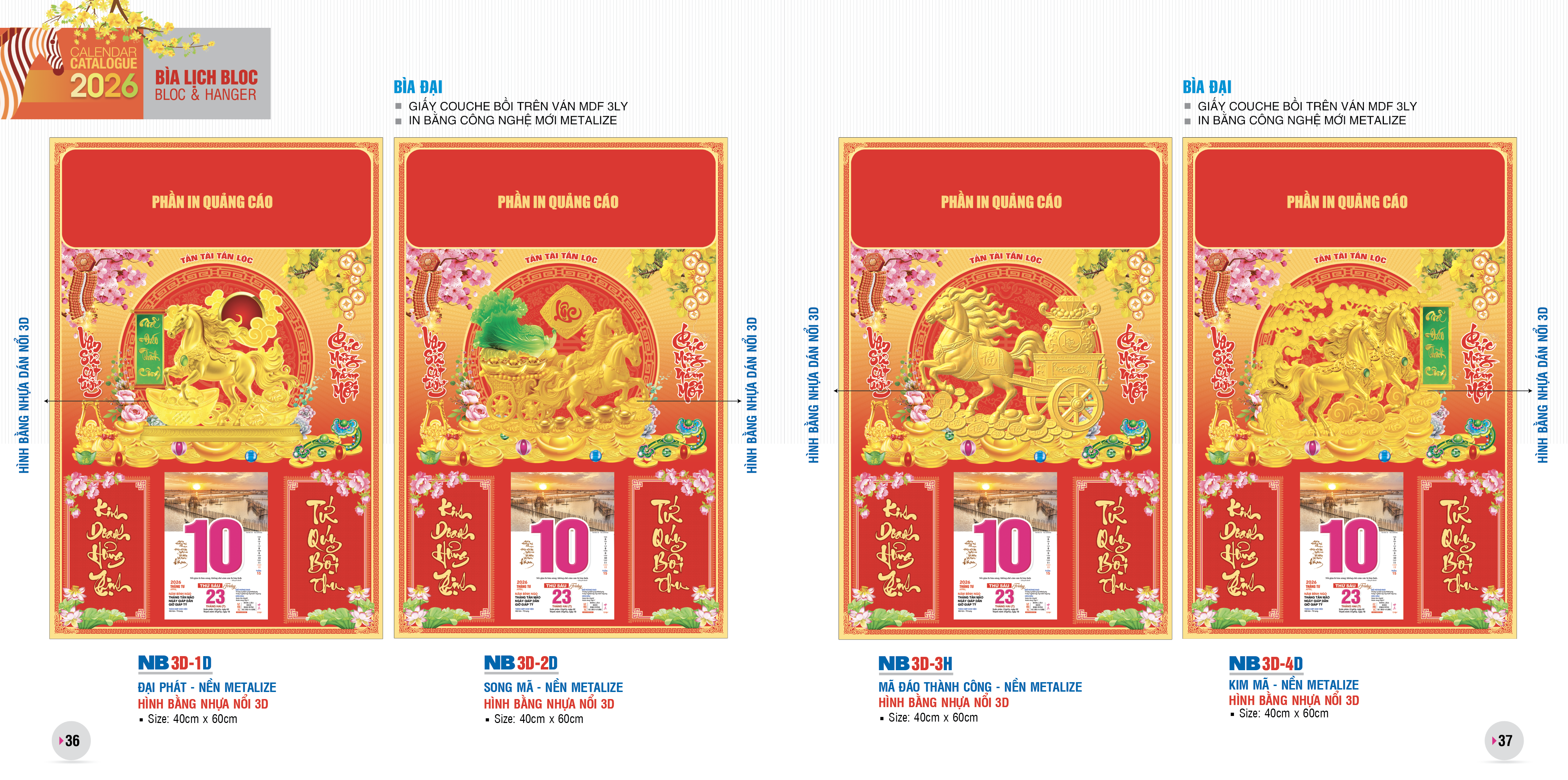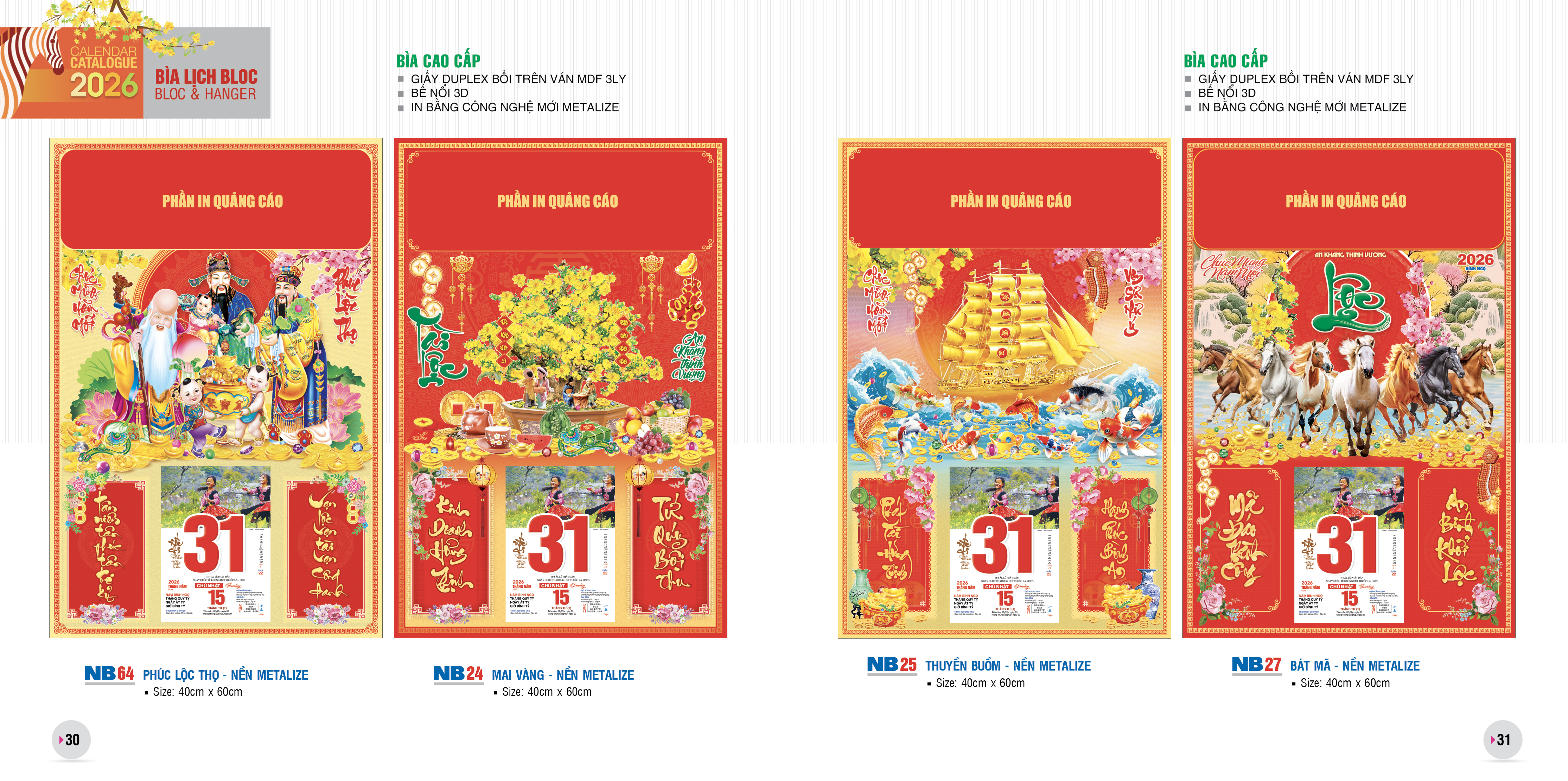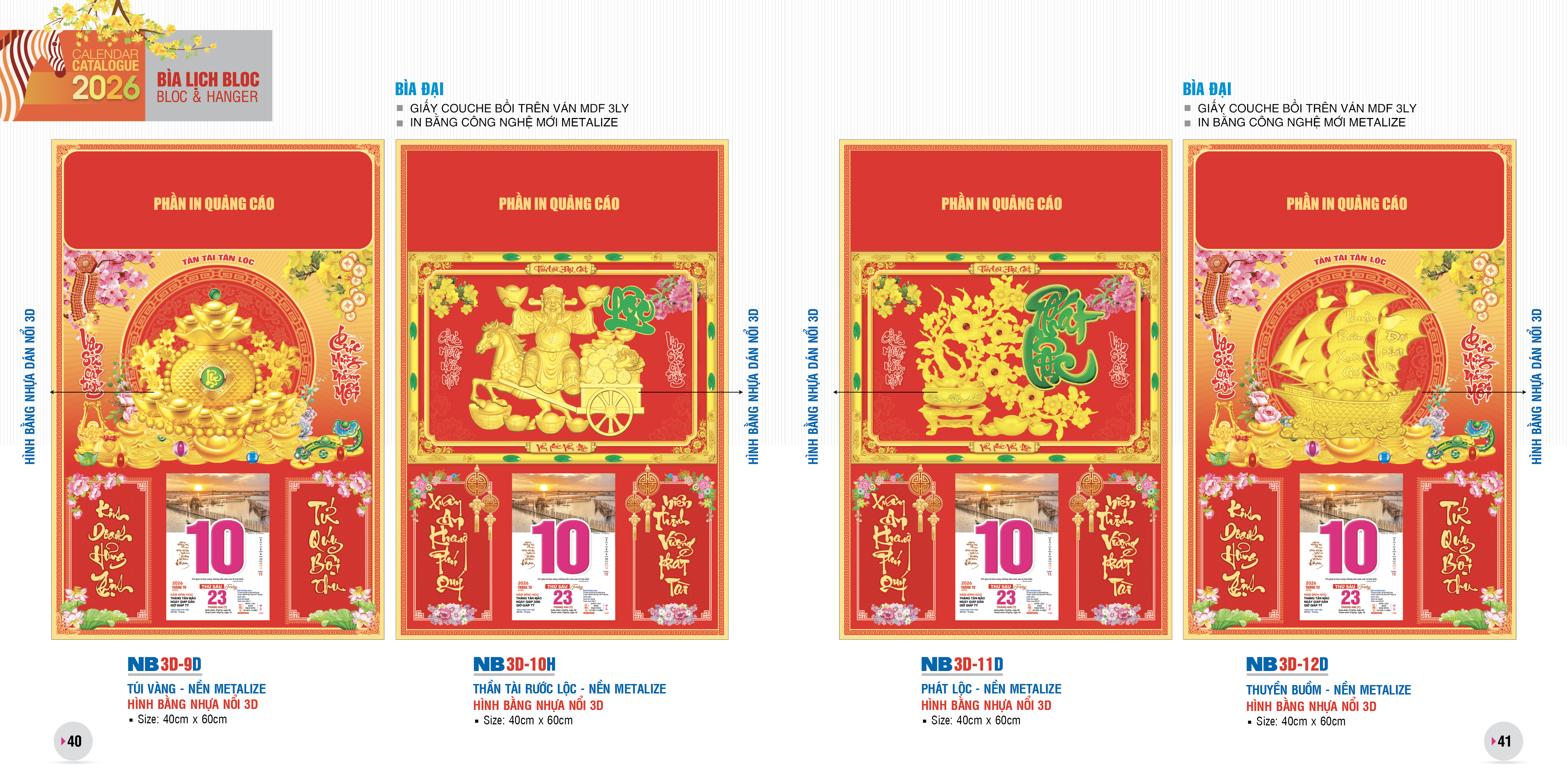 Mẫu bìa lịch 40x60cm là loại lịch treo tường gắn bloc như 14,5×20,5cm, 13x19cm…. với nhiều hình ảnh chủ đề khác nhau là một bức tranh trang trí vô cùng đẹp và sang trọng cho ngôi nhà của bạn là món quà cuối năm vô cùng ý nghĩa tặng cho khách hàng, người thân và bạn bè vừa quảng cáo thương hiệu của bạn đi nhiều nơi đến với nhiều người mà không sản phẩm nào so sánh được.