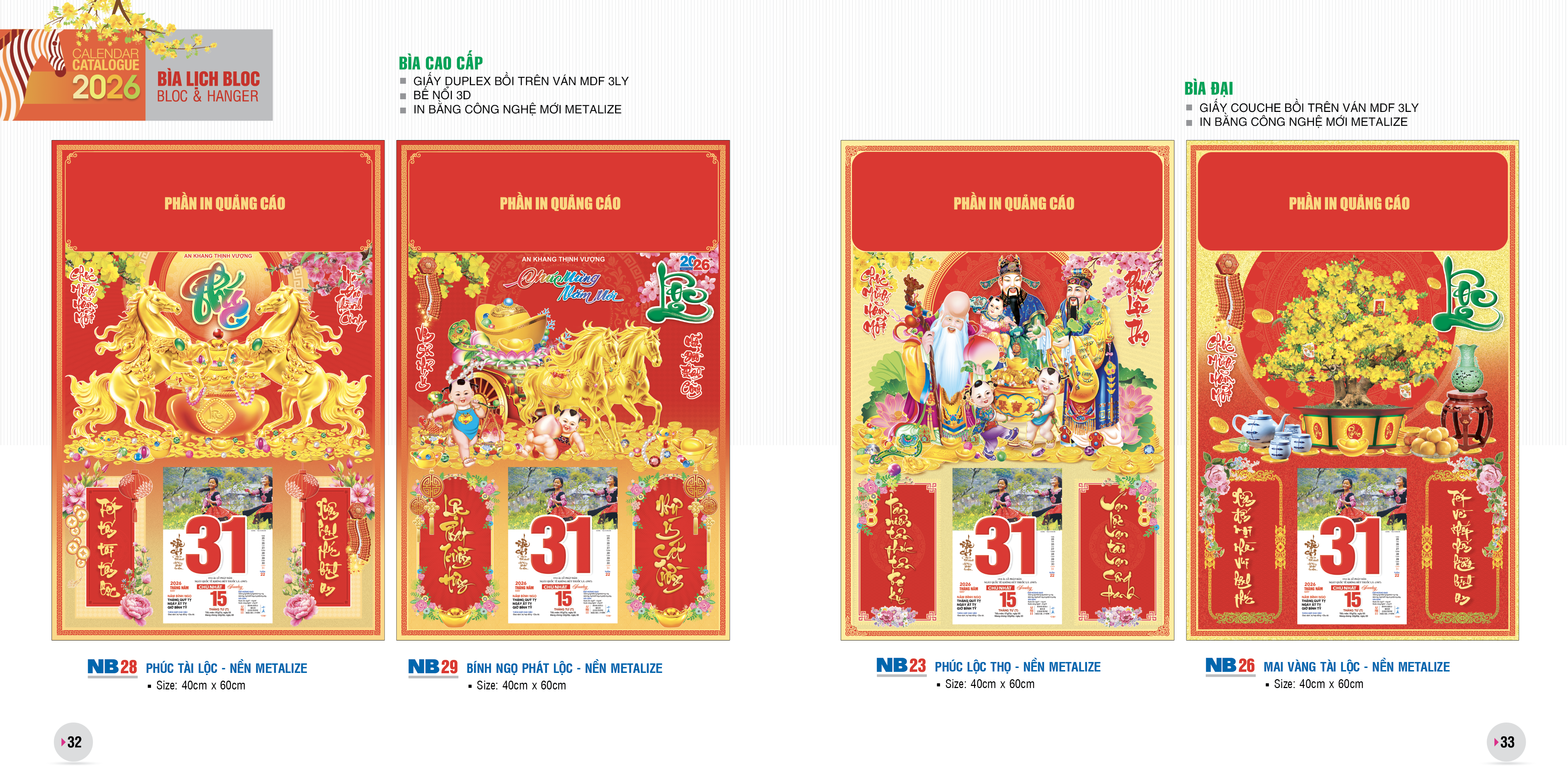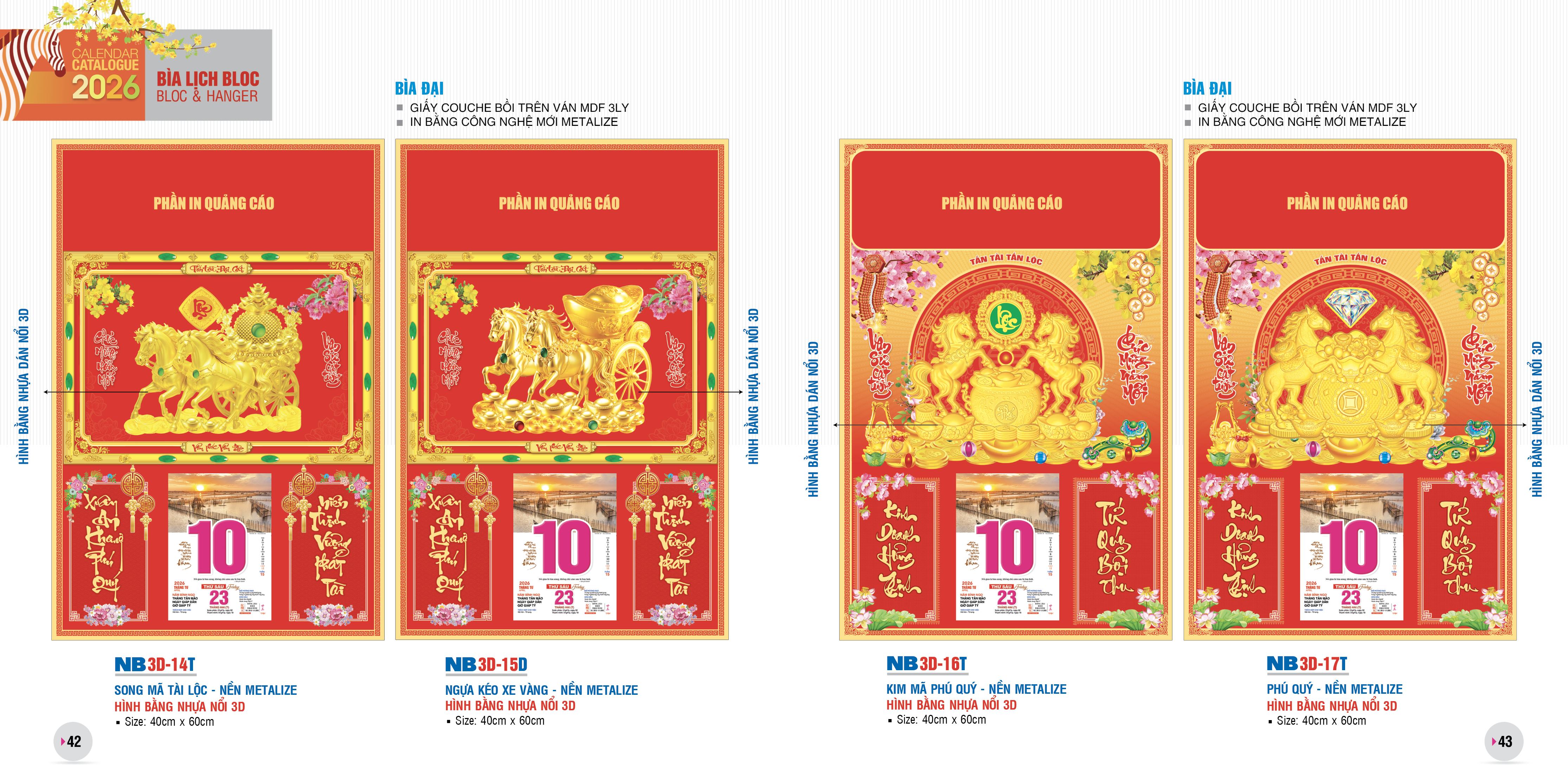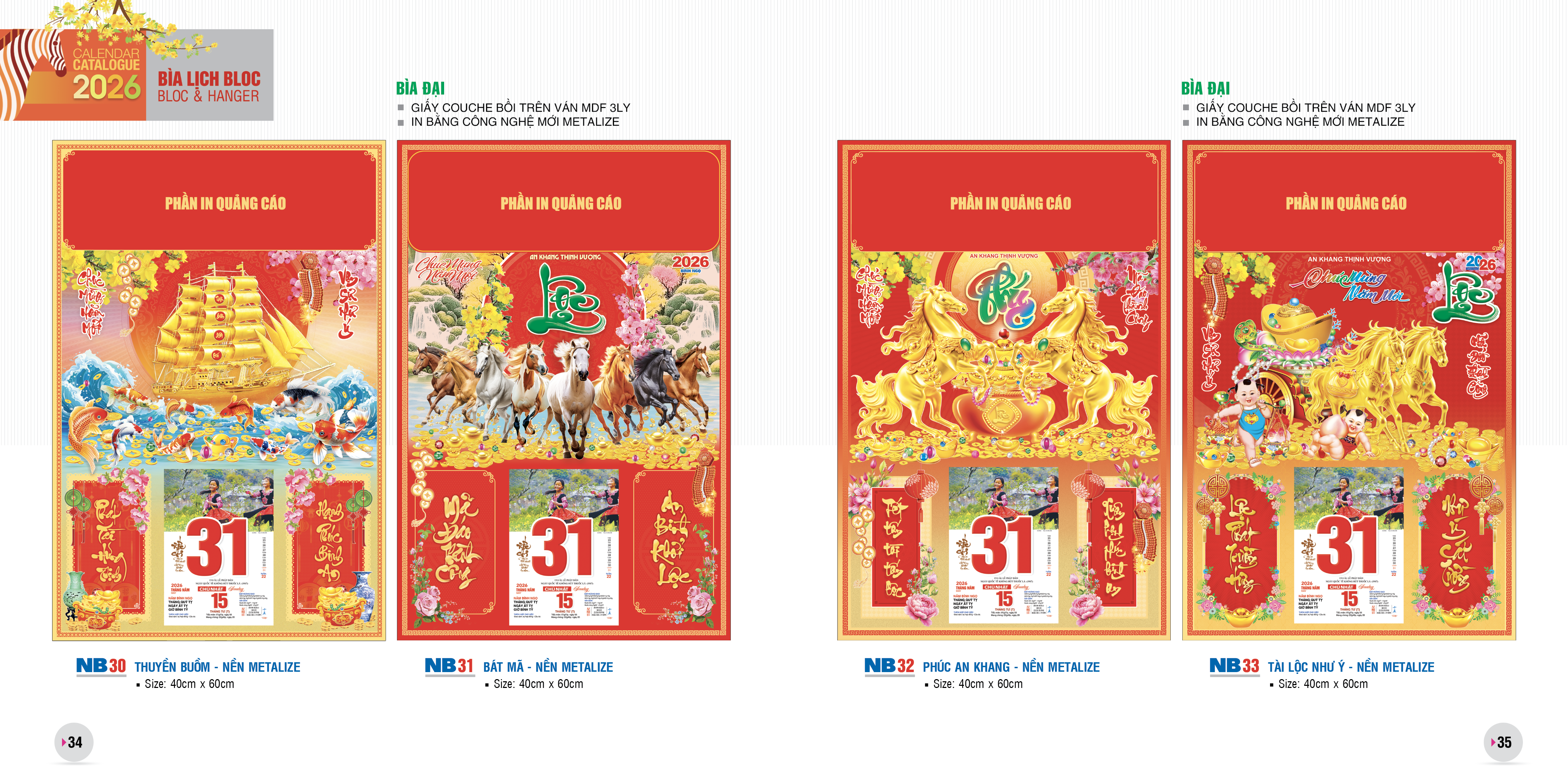 Mẫu bìa lịch 40x60cm là loại lịch treo tường gắn bloc như 14,5×20,5cm, 13x19cm…. với nhiều hình ảnh chủ đề khác nhau là một bức tranh trang trí vô cùng đẹp và sang trọng cho ngôi nhà của bạn là món quà cuối năm vô cùng ý nghĩa tặng cho khách hàng, người thân và bạn bè vừa quảng cáo thương hiệu của bạn đi nhiều nơi đến với nhiều người mà không sản phẩm nào so sánh được.